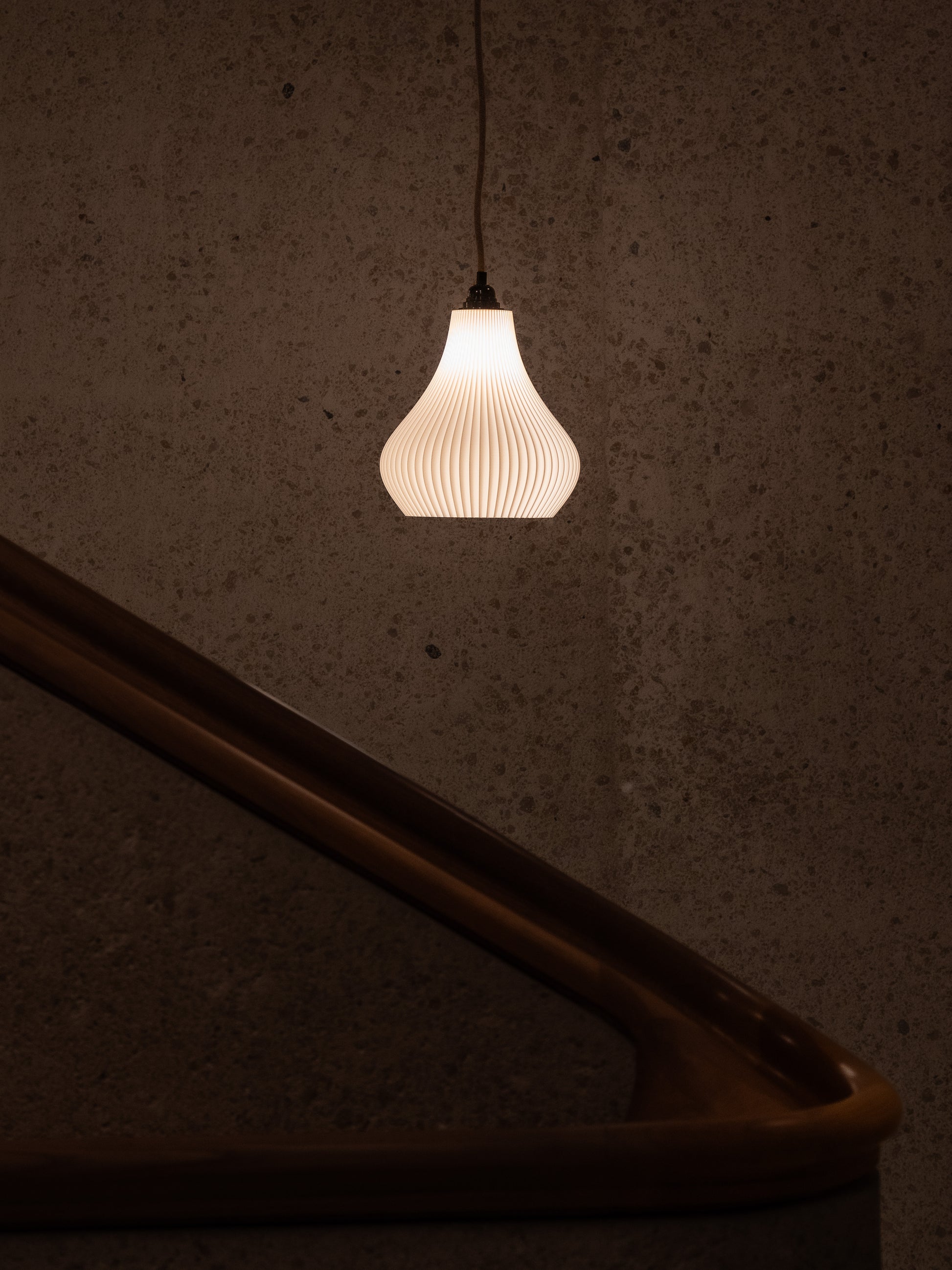 Dank präziser 3D-Drucktechnik entsteht eine harmonische, sanft gewellte Struktur, die dem Lampenschirm seinen einzigartigen Charakter verleiht. Das lange Kabel erlaubt vielfältige Platzierungsmöglichkeiten. Ob über dem Esstisch, im Wohnzimmer oder als elegante Akzentbeleuchtung im Schlafzimmer – die Hängelampe CLÉO fügt sich nahtlos in dein Zuhause ein und schafft eine angenehme Lichtstimmung.